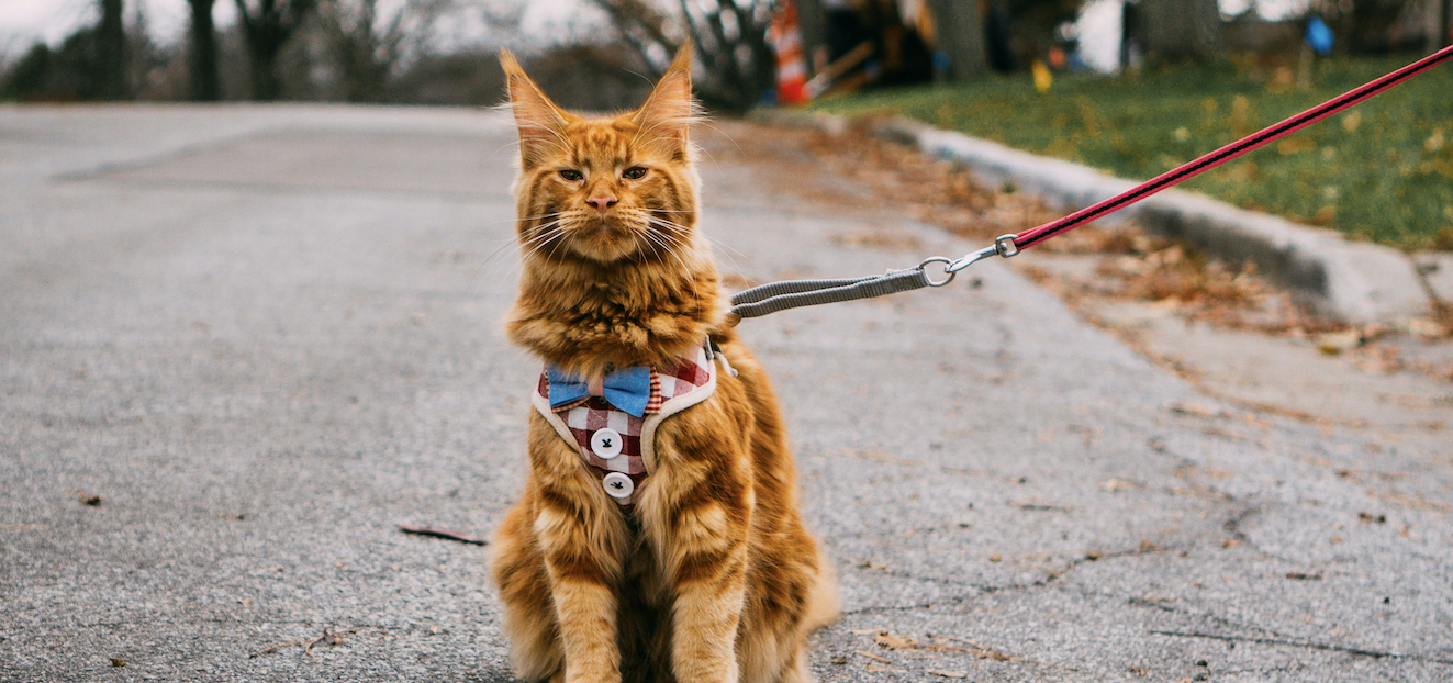 Once you’ve gotten the vet’s go-ahead, find a properly fitted harness and leash and head out to your yard (if you have one) or a grassy park outside your home. Remember to take things slowly, taking note of your feline friend’s responses.