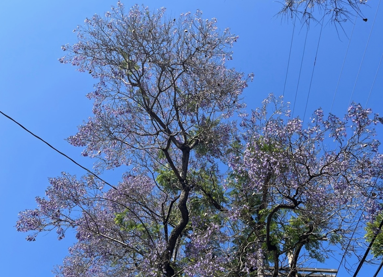 These canopies of bluish-purple spanning across entire city blocks and daintily dropping their petals on parked cars are one of the surefire signs that spring has come to the Southland. Originally hailing from Brazil, the name jacaranda derives from a Tupi-Guarani term, either y-acā-ratā (“heartwood”) or ya’kāg rā’ta (“hard-headed.”)